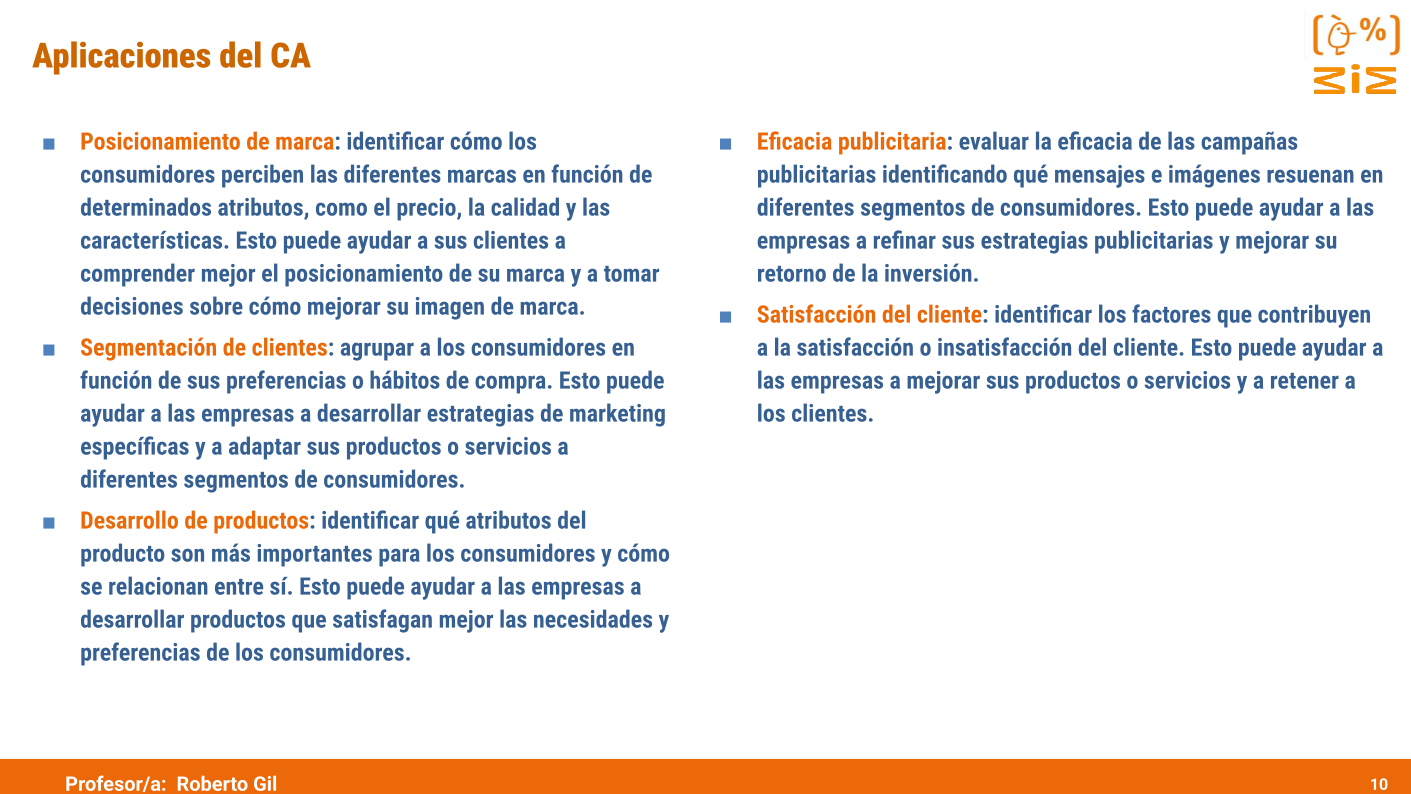 El análisis de correspondencias (CA) es una técnica de interdependencia cuyo