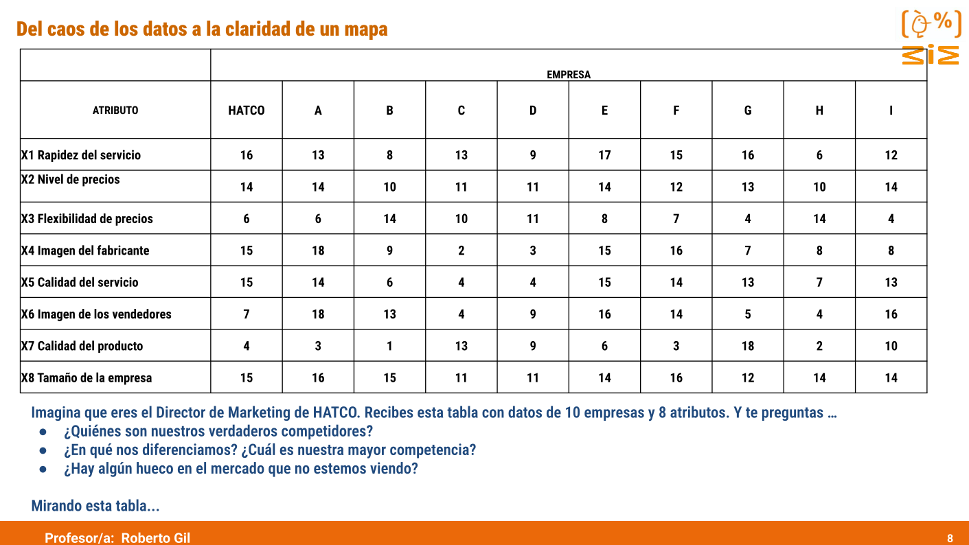 asocien a estas empresas (incluyendo la tuya) con 8 atributos competitivos: